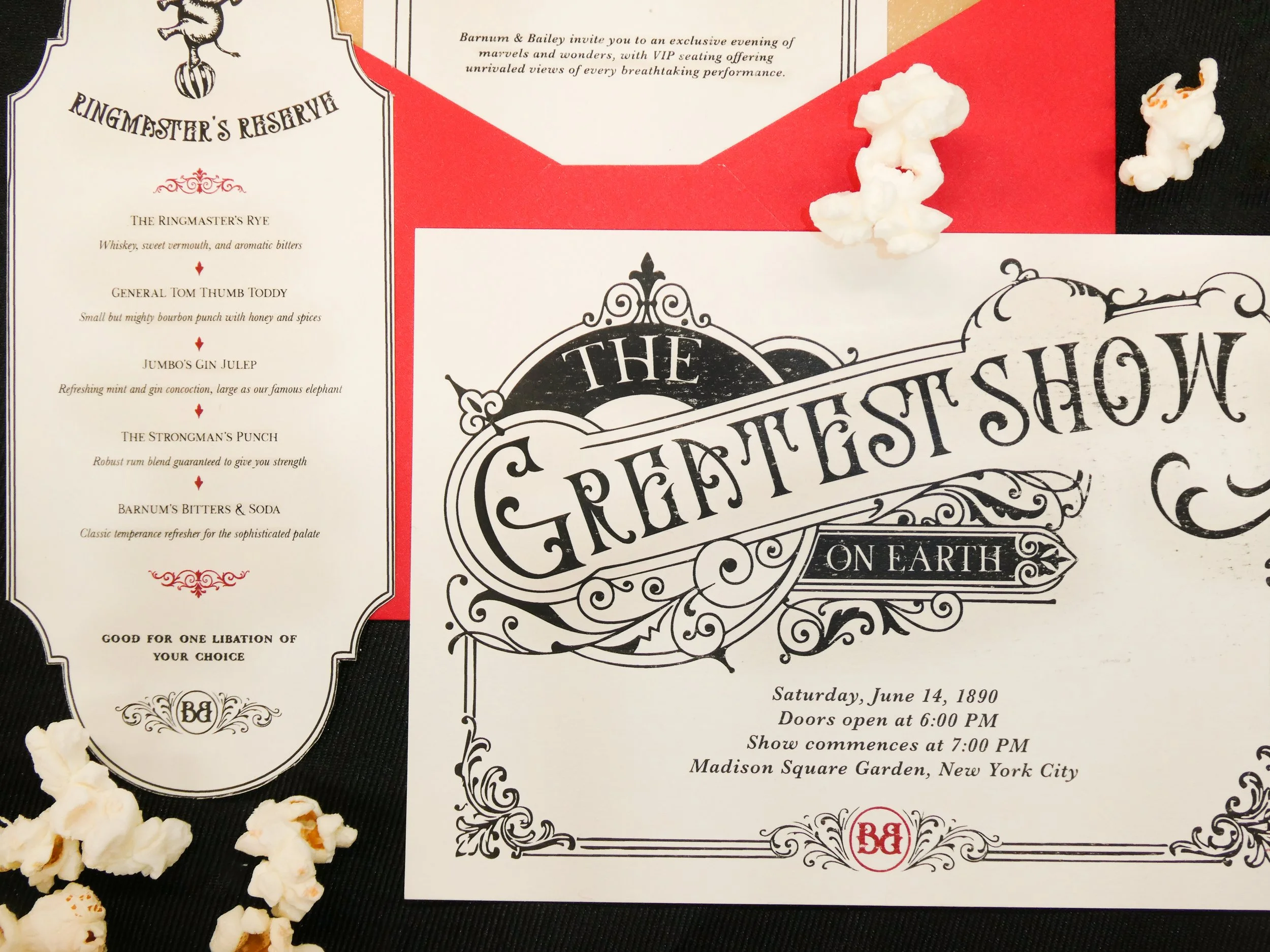 Explores type in print through the production and design of an invitation suite for a historical event (P.T Barnum & Baileys, “The Greatest Show on Earth“). The project is based in personal research into the typographic styles of different time periods and locations. In addition to historical research, this project focuses heavily on the technical aspects of typesetting for print and production techniques for print artifacts. Typographic Design, Typesetting, Historical Type Research, Print Layout, Production Methods